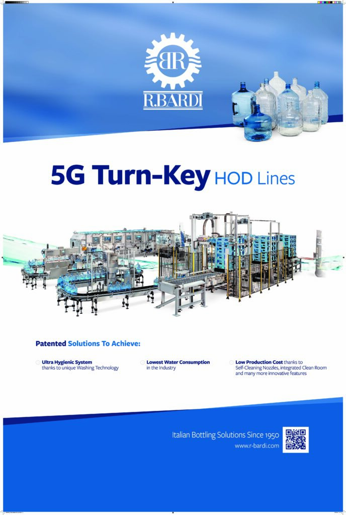 At the end of 90s, combined with its strengths of 50 years’ experience into the returnable glass industry, R. Bardi directs its attention to the water large formats market (5 Litres to 5 Gallons bottles). Today, the company has reached a worldwide leading position for turn-key supply for this industry and represents a point of reference in terms of technical development and product hygienic safety.